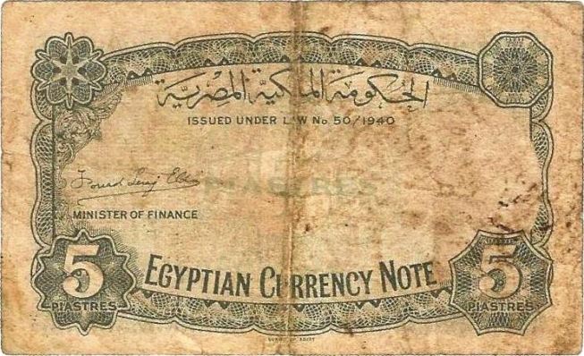 Year: 1964; Obverse: Funerary mask and statue of Hatshepsut Maatkare (although it is usually thought to be Tutankhamun's death mask or statue).Reverse: Ornamental and flowery designs, decorative framing, guilloche patterns and rosettes. Security features: Consecutively running serial numbers on the front of the banknote. Watermark. Watermark: Arms